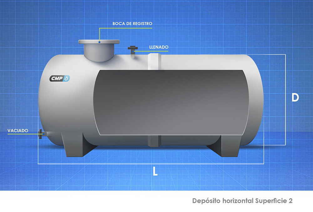 Estos depósitos de agua tienen forma cilíndrica y son para colocar horizontalmente. Se trata depósitos de agua para riego, agua de lluvia, y también para el almacenamiento de agua u otros líquidos. Las capacidades de estos depósitos de agua oscilan entre los 650 y 40.000 litros.