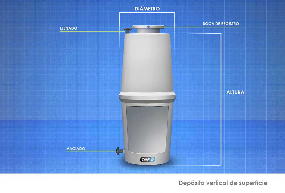 Estos depósitos de agua tienen forma cilíndrica y son para colocar verticalmente. Se trata depósitos de agua para riego, agua de lluvia, y también para el almacenamiento de agua u otros líquidos. Las capacidades de estos depósitos de agua oscilan entre los 650 y 40.000 litros.