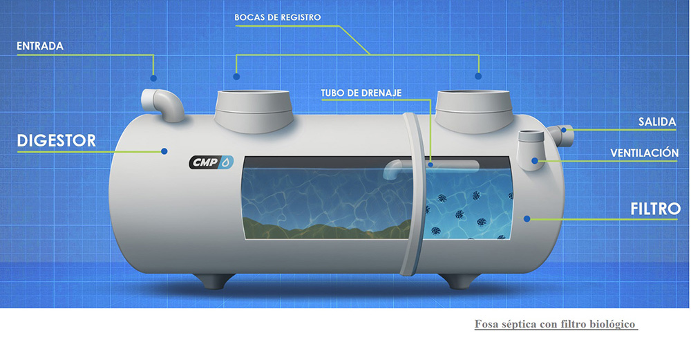 Los sólidos en suspensión de las aguas residuales se depositan en el fondo del digestor y una vez allí, las colonias bacterianas anaerobias proceden a su descomposición y parcial eliminación. Esta operación se repite en el clarificador de la fosa séptica, optimizando así el resultado final.
